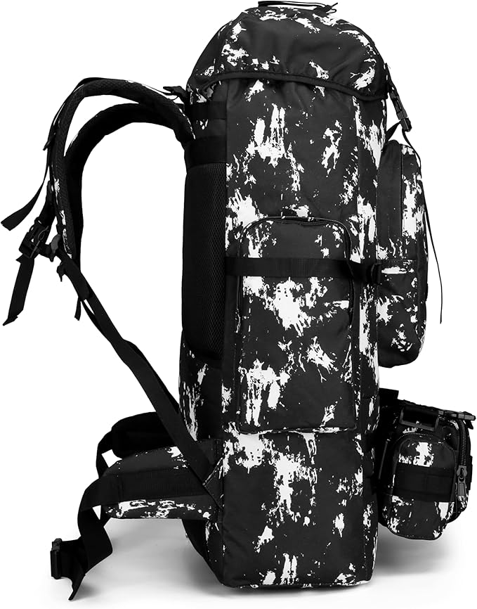 - 【Waterproof and Breathable Fabric】: The 100l tactical military backpack is made of 901D Oxford cloth fabric and waterproof material. The military backpacking bag thick density Tear Resisten Oxford cloth fabric is waterproof and wear-resistant, and the texture is tough and odorless. For traditional hiking backpacks, belts and high-quality zippers are better with durability and scratch resistance.