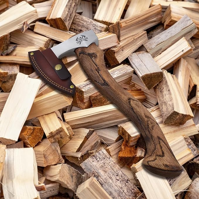 - 【Versatile survival axe】This camping hatchet is exquisitely crafted and includes a leather sheath for blade protection,making it easy to store and carry. Additionally, it comes with a sharpening stone, allowing you to polish it at any time without the need for additional purchases. Its versatility and portability make it an excellent gift for camping enthusiasts.
