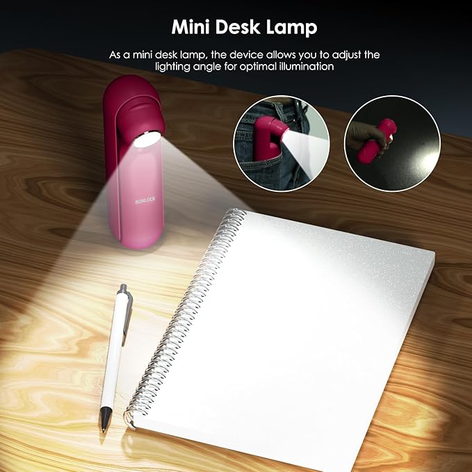 - 【Multifunctional】It's a handheld fan when it unfolded 180°,small table fan or battery operated mini desk lamp when it unfolded 270°,It has a separate flashlight switch button, which can use the flashlight function in both folding or working states,It comes with a 2000mAh rechargeable battery and 5V/1A USB output port, whether in a folded state or working, it can all be used as power bank.
