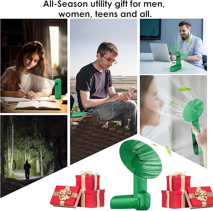 - 【Cool and unique gift】Gifts for people who have everything.This This 4 in 1 multifunctional handheld fan is the best birthday gift,it is also a great Christmas stocking stuffing gifts,perfect for thanksgiving, valentines day,mothers day,fathers day,graduation,anniversary,it's the best gifts for women,men,mom,dad, teens, grandpa,grandma, son, husband, boyfriend. It is practical for everyone, utility gifts for all-season.