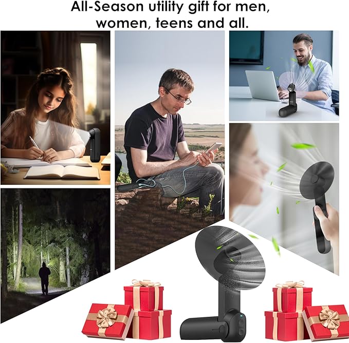 - 【Cool and unique gift】Gifts for people who have everything.This This 4 in 1 multifunctional handheld fan is the best birthday gift,it is also a great Christmas stocking stuffing gifts,perfect for thanksgiving, valentines day,mothers day,fathers day,graduation,anniversary,it's the best gifts for women,men,mom,dad, teens, grandpa,grandma, son, husband, boyfriend. It is practical for everyone, utility gifts for all-season.