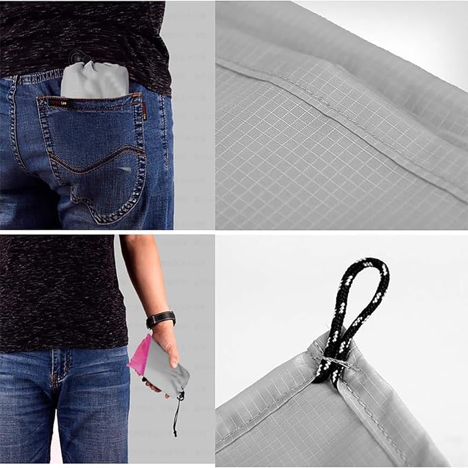 - LIGHTWEIGHT AND PORTABLE : This pocket blanket is compact and lightweight, can be folded into a small bag and put into your pocket. It is ultra-lightweight tarpaulin and weighs only 0.24 kg, whether it's a festival, concert or backpacking trip, it is always your small travel picnic blanket and never adds burden.