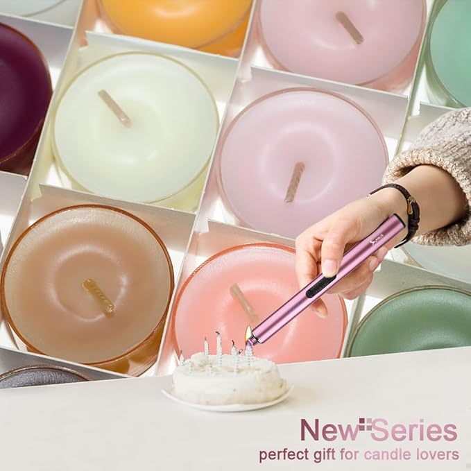 - 【Safety Protection Design】The candle lighter built-in automatic power-off chip protection and external safety lock switch can effectively increased safety. Designed with child safety in mind, you have to push the safety lock switch first, then press the ignition switch to work. The igniting spark will auto stop beyond 7 seconds per igniting. Restart the switch, the igniting spark will be re-ignited.