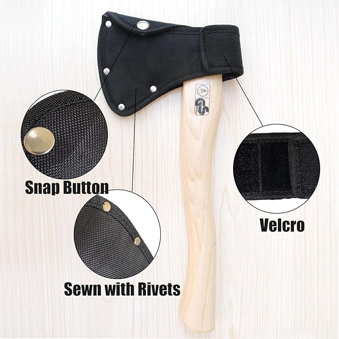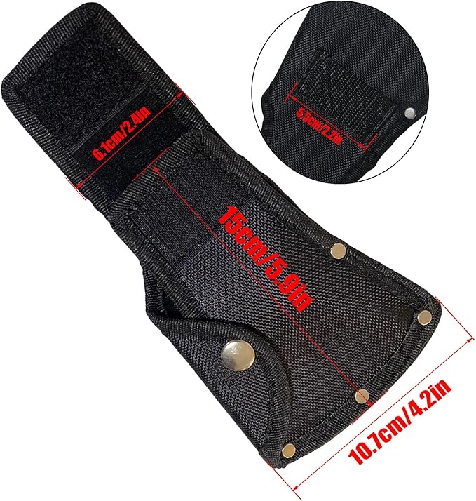 - High Quality Material: The axe head sheath holster is made of high quality nylon material, and sewn with rivets and nylon thread in the edges.Thus make sure the axe blade to be protected.