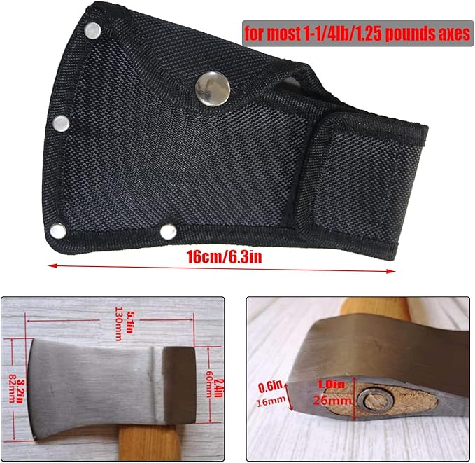 - About Size: The width of the axe cover is 16cm/6.3in, suitable for most 1-1/4lb/1.25 pounds axes. Please make sure check the size of both our hatchet holster and your axe before purchase.