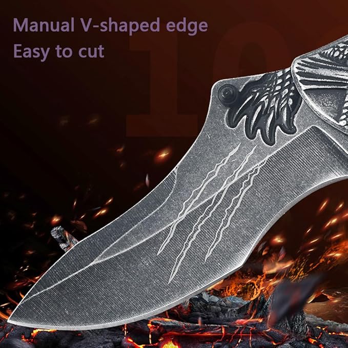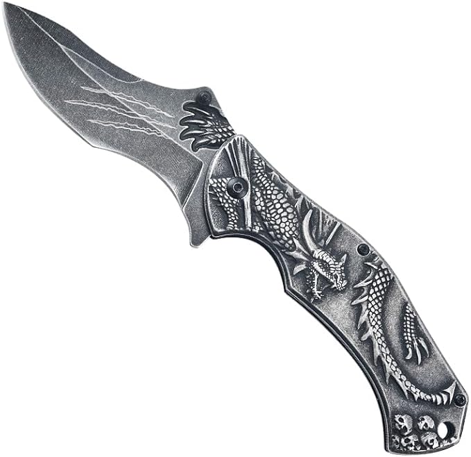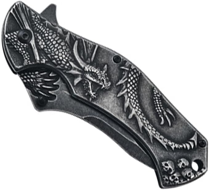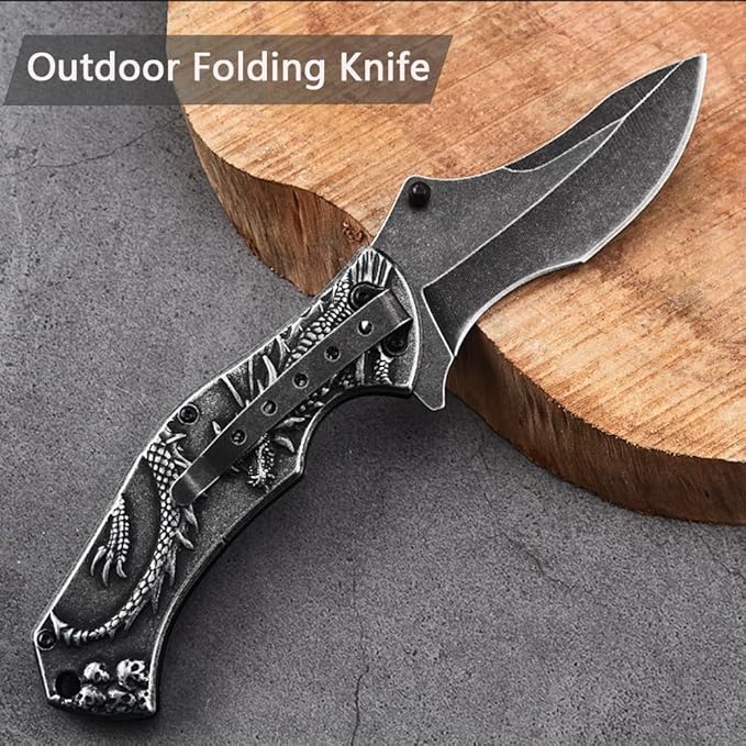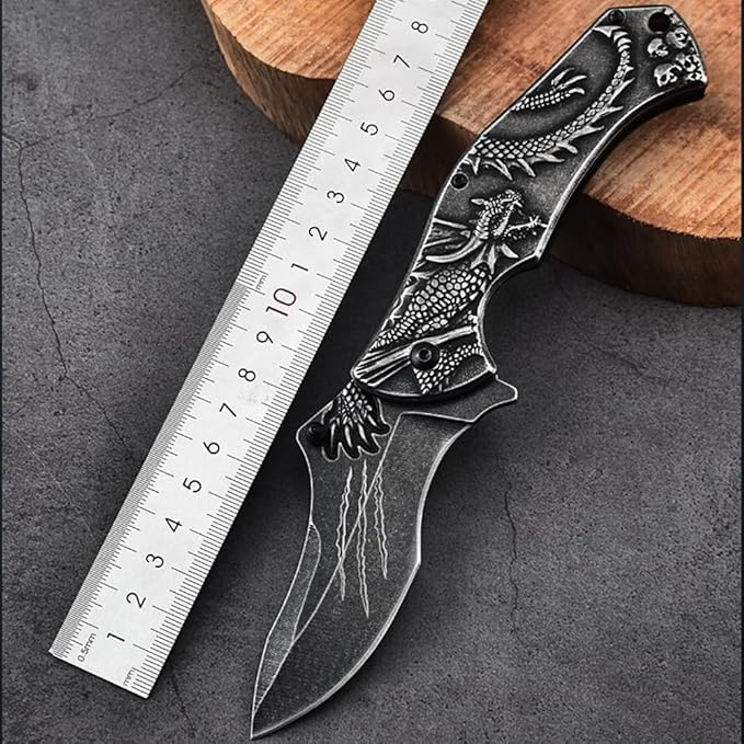 3D embossed folding knife, outdoor knife for camping, barbecue, fishing, cutting (Flying Dragon)