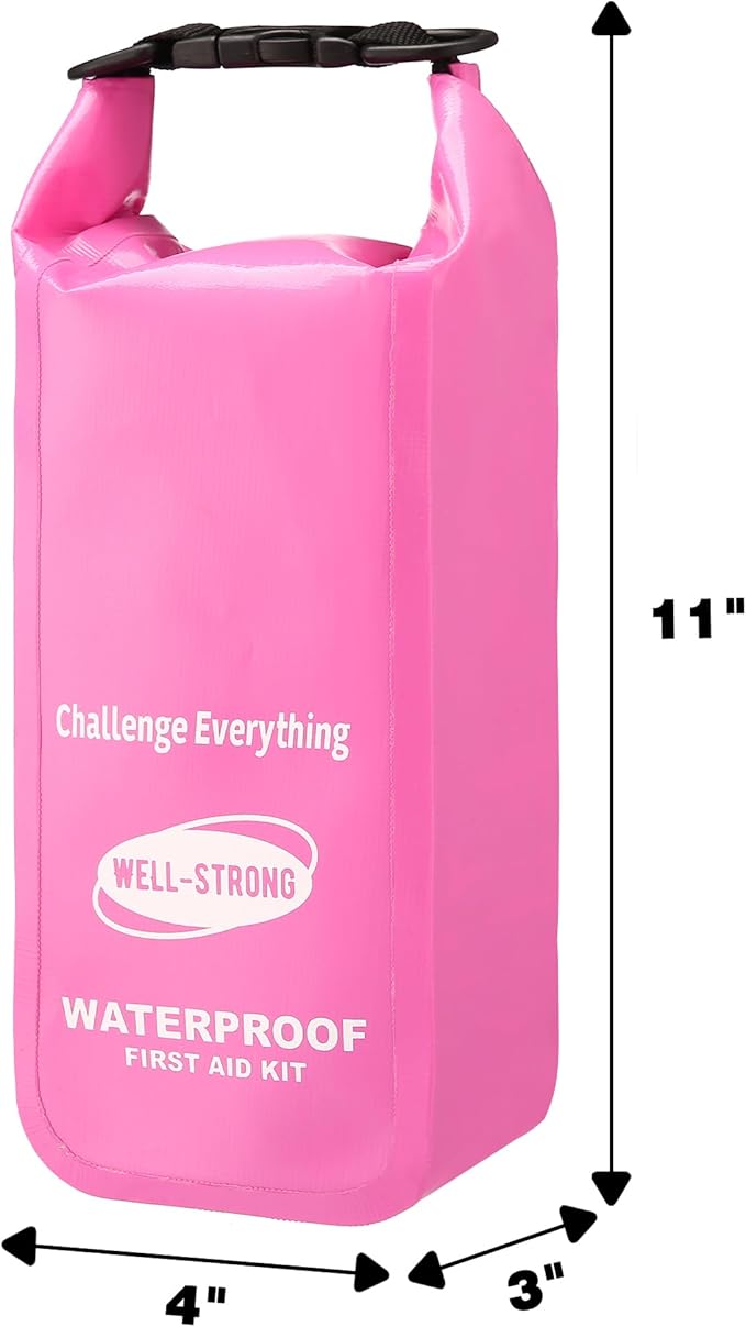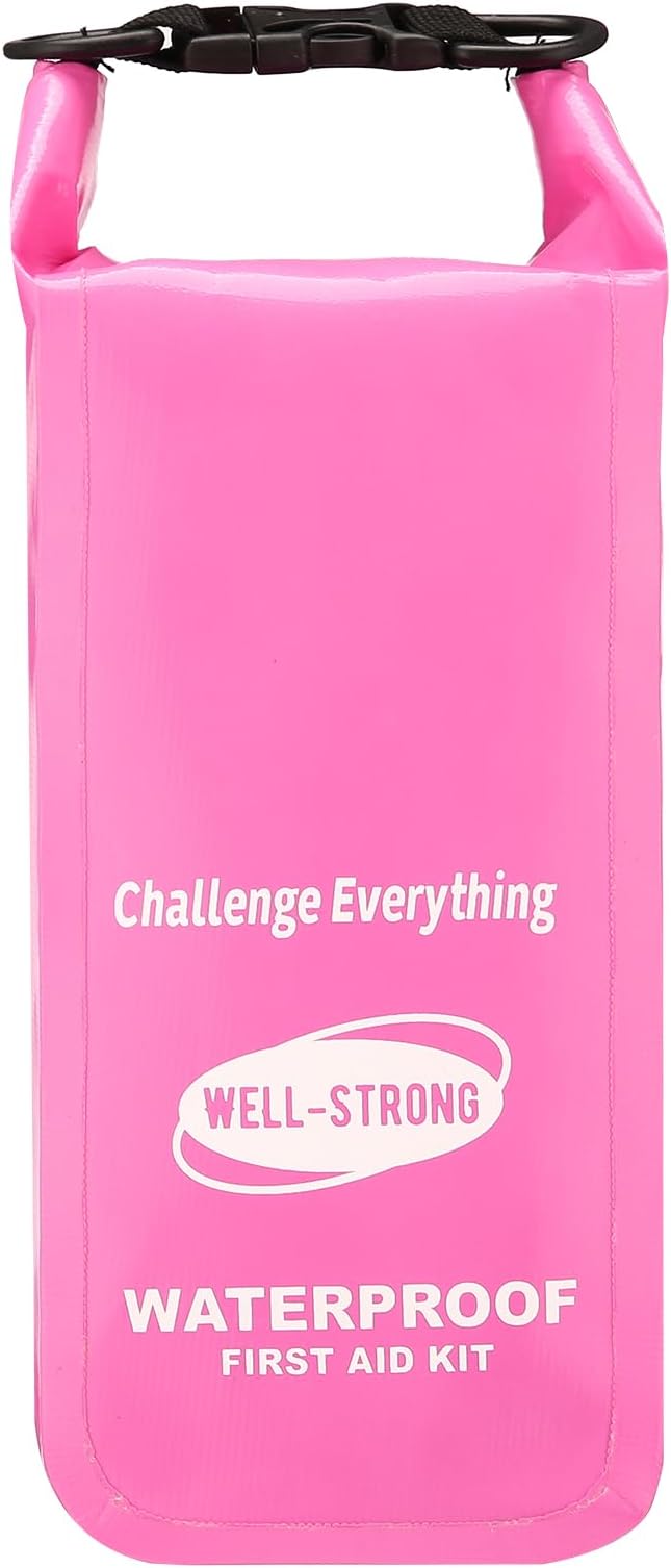 Waterproof First Aid Kit Roll Top Boat Emergency Kit with Waterproof Contents for Fishing Kayaking Boating Swimming Camping Rafting Beach Pink
