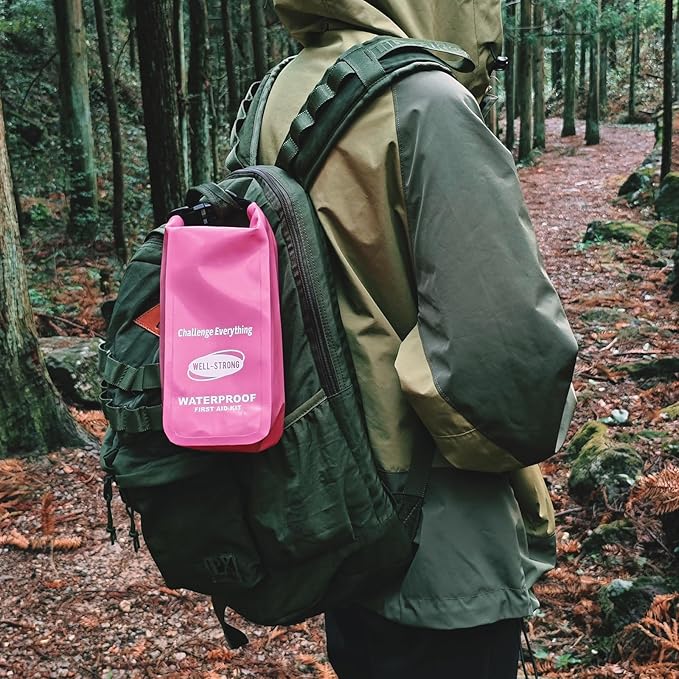 - WATERPROOF FIRST AID KIT: This kit with roll-top closure design is an essential item for anyone who spends time in the great outdoors, whether it be hiking, camping, or engaging in water-based activities such as swimming, surfing, or boating. This type of kit is designed to protect the contents from water damage and keep them dry, ensuring that the supplies inside remain usable and effective in case of an emergency.