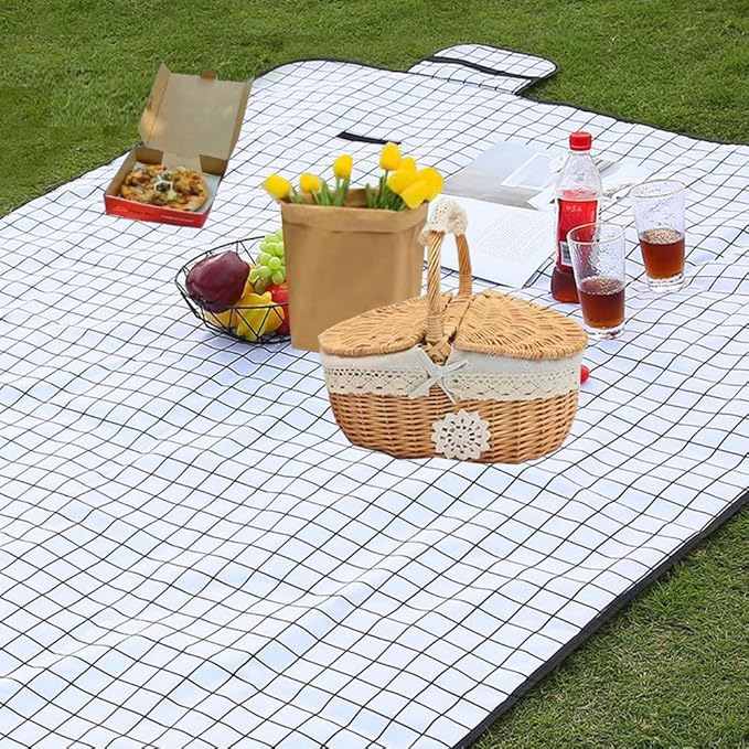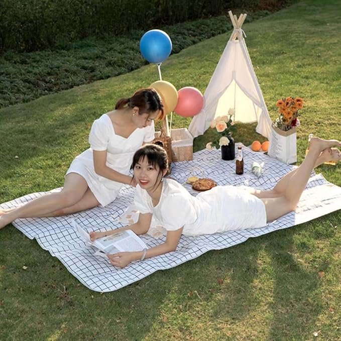 - EXTRA LARGE OUTDOOR BLANKET: Attractive Design For Photos - Cute gingham blanket with white and tan checkers looks great in photos, on grass or sand. Waterproof picnic blanket is a good choice for your daily life.