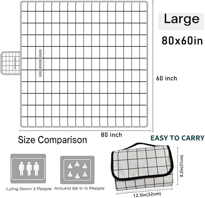 - 80*60 Inch Oversized for 2-5 Adults: Portable Blanket for Outdoor & Indoor - The unfold size of our outdoor picnic blankets is 60"×80" (150*200cm) and fit up to 2-4 adults, suitable for the whole family. It is perfect for picnic, park, beach, camping, hiking, car driving travel, outdoor concert and nap.