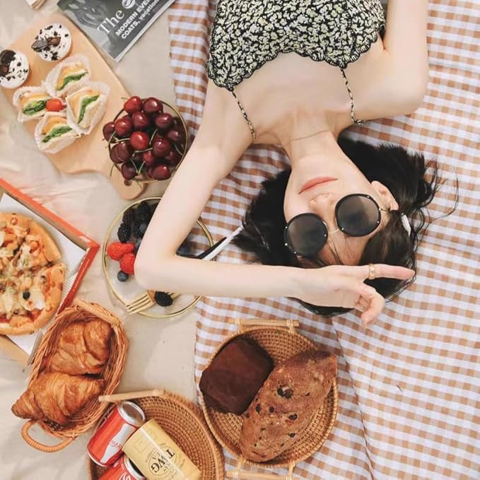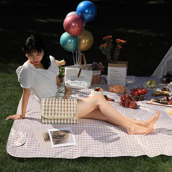 - EXTRA LARGE OUTDOOR BLANKET: Attractive Design For Photos - Cute gingham blanket with white and tan checkers looks great in photos, on grass or sand. Waterproof picnic blanket is a good choice for your daily life.