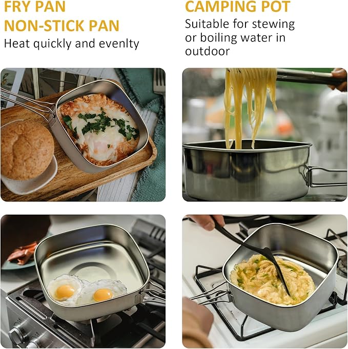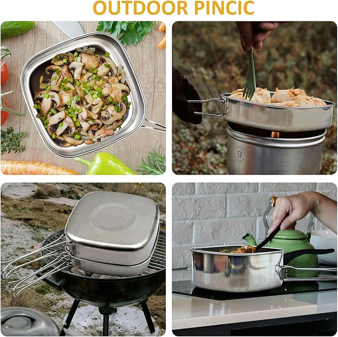 - ⭐Quality Assurance: If you have any issues with our stainless camping cookware, Pls feel free to contact us and we will 24 hours respond in time.