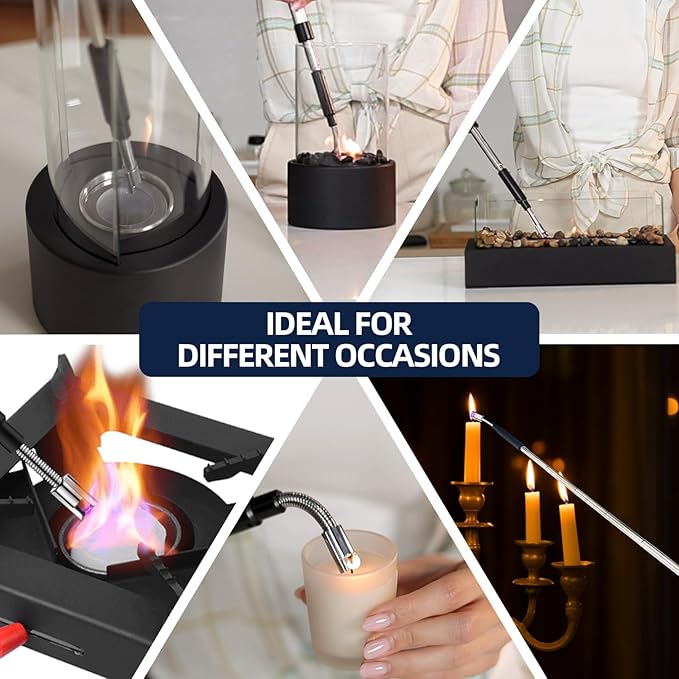 - 360° Flexible Neck and Extendable Pole: Made of stainless steel, our electric lighter features a 360° rotatable neck and an extendable pole, suit for safely lighting hard-to-reach items like candles, BBQs, stoves, Tabletop fire pits, and more