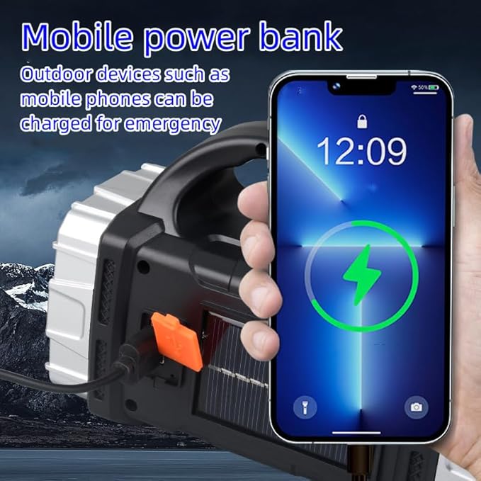Spotlight Flashlight Rechargeable, Led High Lumens Super Bright, Solar Panels,7 Modes,IPX4 Waterproof Handheld Spotlight for Home Power Failure,Outdoor,Camping,Hiking,Emergencies