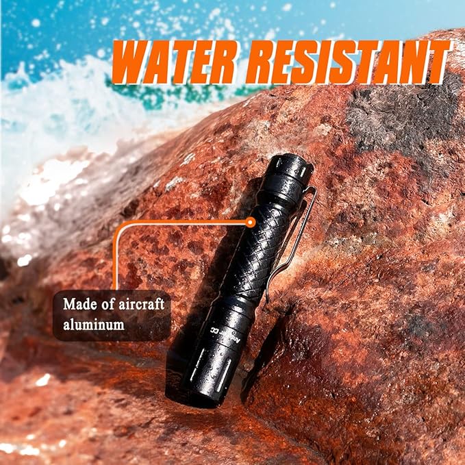 - 【Super Durable】The flashlight is made of aviation aluminum. Solid build and water-resistant , with lenses that are hard to crack and scratch. Work reliably in bad conditions such as rain and snow, accidental falling, temporary soaking, etc.