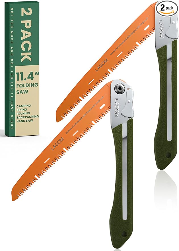 2 Pack Folding Saw | Folding Hand Saw for Cutting Branches, 11.4", a Camping Saw Made with SK5 Steel, Survival Saw with a Secured Design, Folding Camp Saw