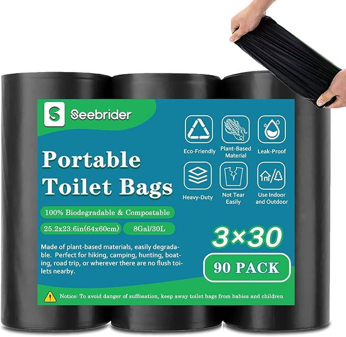 - Widely Versatile🚽: Portable toilet bags for camping fit most 5 or 8-gallon portable toilets, framed toilets, or bucket toilets. You can also use it as an eco-friendly composting garbage bag or toilet bag at home.