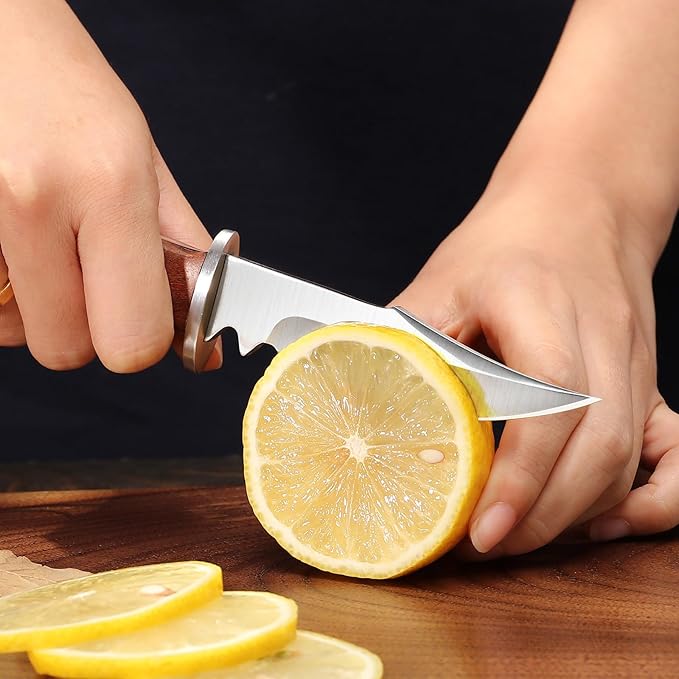 - Exquisite Wooden Handle: Designed with a handcrafted wooden handle, this knife provides a comfortable grip for precise handling.