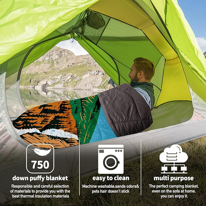 - 1.Ultimate Puffy Camping Blanket:This puffy camping blanket is a perfect gift for anyone who loves camping, hiking, and the outdoors. This blanket is easy to pack, carry, warm and lightweight that you can take just about anywhere. Personalized print shell made from 100% recycled materials, no damage to the environment.