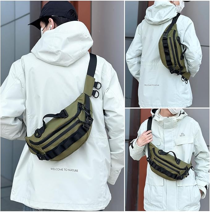 - 🔘 MATERIAL -- This small fanny pack for men adopts High density 600D nylon fabric, high quality ABS buckles, lightweight, wear-resistant and water-resistant.