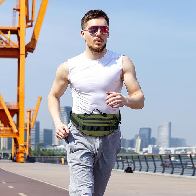 CamGo Tactical Fanny Pack for Men Women Military Waist Bag Molle Utility Hip Belt Pouch Crossbody Bags Bumbag for Cycling Hiking Walking Fishing Army Green