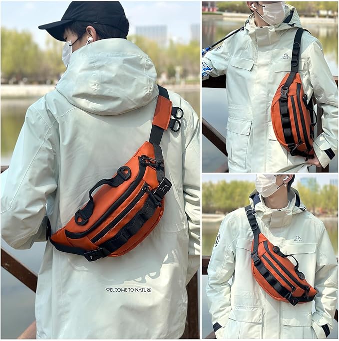 - 🔘 MATERIAL -- This small fanny pack for men adopts High density 600D nylon fabric, high quality ABS buckles, lightweight, wear-resistant and water-resistant.
