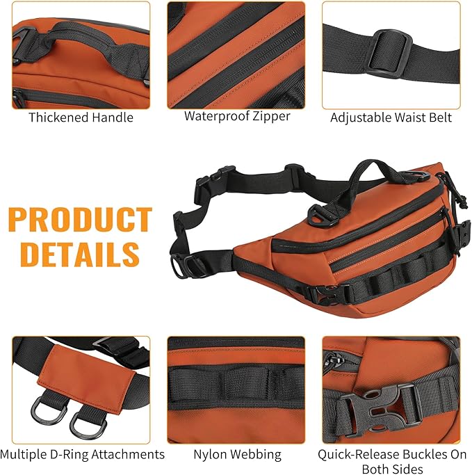 CamGo Tactical Fanny Pack for Men Women Military Waist Bag Molle Utility Hip Belt Pouch Crossbody Bags Bumbag for Cycling Hiking Walking Fishing Orange