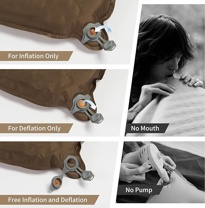 - UNIQUE TWO-WAY INFLATION VALVE: Two-way inflation valve, only one layer can be opened to inflate and prevent air leakage, and both layers can be opened for quick deflation. The unique design helps you to adjust the softness of the mattress by yourself. Note that the first time you use the mattress, the air intake will be slow, the self-inflation usually only reach 80% of the level, the last need to make up a little bit of air. Do not over-inflate
