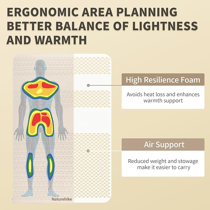 - UNIQUE FOAM CUT CONSTRUCTION: The Naturehike Sleeping Pad is filled with slow rebound foam that conforms to your body's curves and provides extra support for your lower back, hips, shoulders, neck and legs. The unique foam cutting process makes the mattress lighter than other mattresses of the same size. Single weight: 1.7 kg / 3.2 lbs, Double weight: 3 kg / 6.6 lbs. Also, the smaller storage volume makes it easy to take on the go