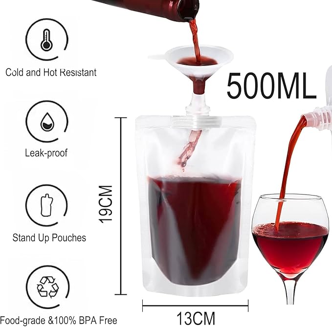 10PCS Plastic Flasks - Reusable Drink Bags, Leak-Proof Drink Pouches, BPA-Free for Travel, Outdoor Sports, Concerts, Events (16OZ - 10PCS + 2 Funnels)