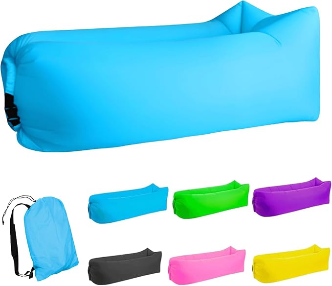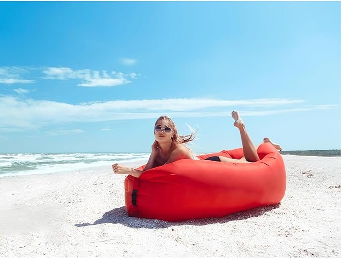 - 【EASY INFLATION】-No pump required. Simply open it up against the wind and whisk it through the air to fill the lounger. You may need to do this 3-4 times. Then roll the edges in, buckle and you are done! It can also be inflated with a fan. Once inflated, the blow up couch can be used as a beach lounge, beach chairs, camping chairs.