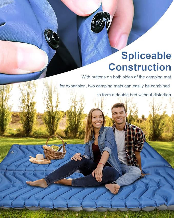 - Would You Like a Double Bed?: Our camping sleeping pad are equipped with connecting buttons on the side, so you can easily connect another sleeping mat together to combine to form a double bed, providing you with a more spacious resting area, perfect for camping out with your family and friends.