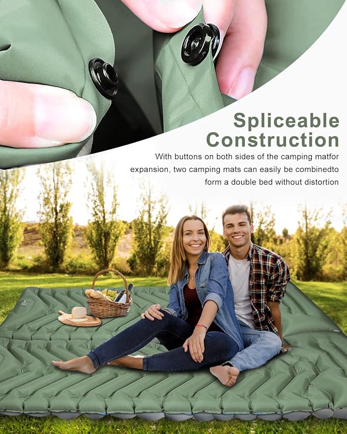- Would You Like a Double Bed?: Our camping sleeping pad are equipped with connecting buttons on the side, so you can easily connect another sleeping mat together to combine to form a double bed, providing you with a more spacious resting area, perfect for camping out with your family and friends.