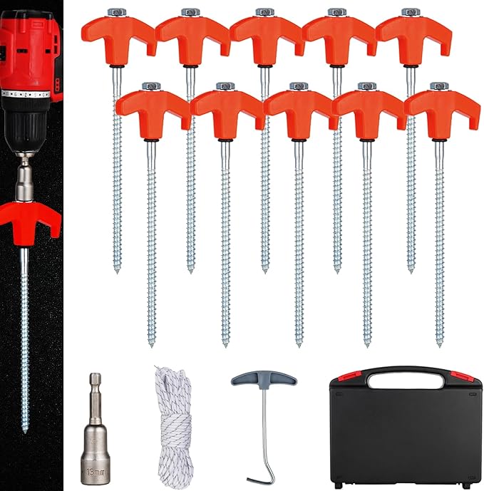 - ACCESSORIES: easy to store and sturdy carrying case, 13mm hex bit, 50FT tent rope.