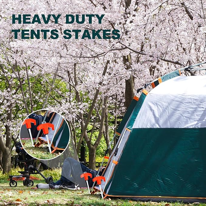 - STABLE AND DURABLE: The tent pegs have threaded details for a stronger grip and can be adapted to a variety of surfaces, whether it's grass, hard soil, gravel or any other ground, he can hold on to it firmly and will always be your solid backing.
