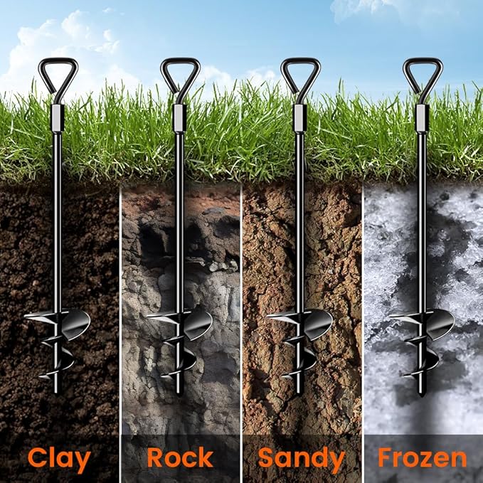 - 【Applicable to different geology】: The spiral blades of the ground anchor can easily penetrate hard soil, rocky soil, frozen soil, sand and gravel geology. And using the accessory tool, it can be inserted into the ground very quickly.