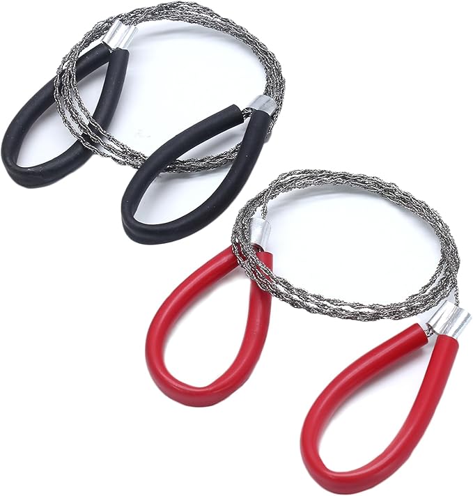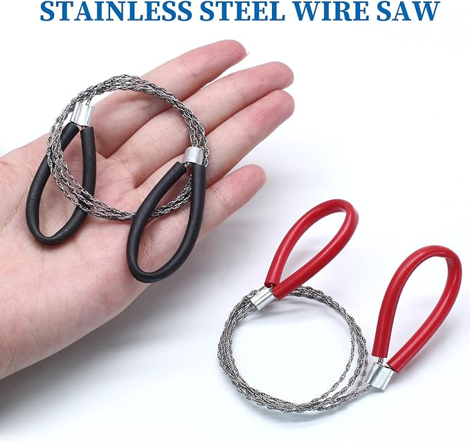2 Pcs Survival Wire Saw, Heavy Duty Emergency Steel Wire Saw, Pocket Size Outdoor Tool for Cutting Wood Rubber Plastic (Black, Red)