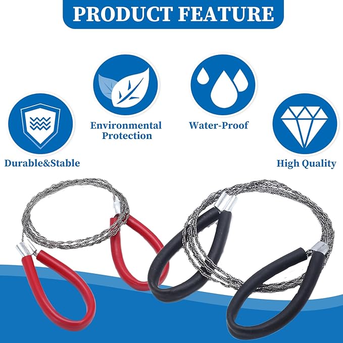 - 【Wide Application】 Emergency wire saw is compact and portable, suitable for hiking, fishing, camping and other outdoor activities, and can be used to cut wood, plastic, rubber and other materials.