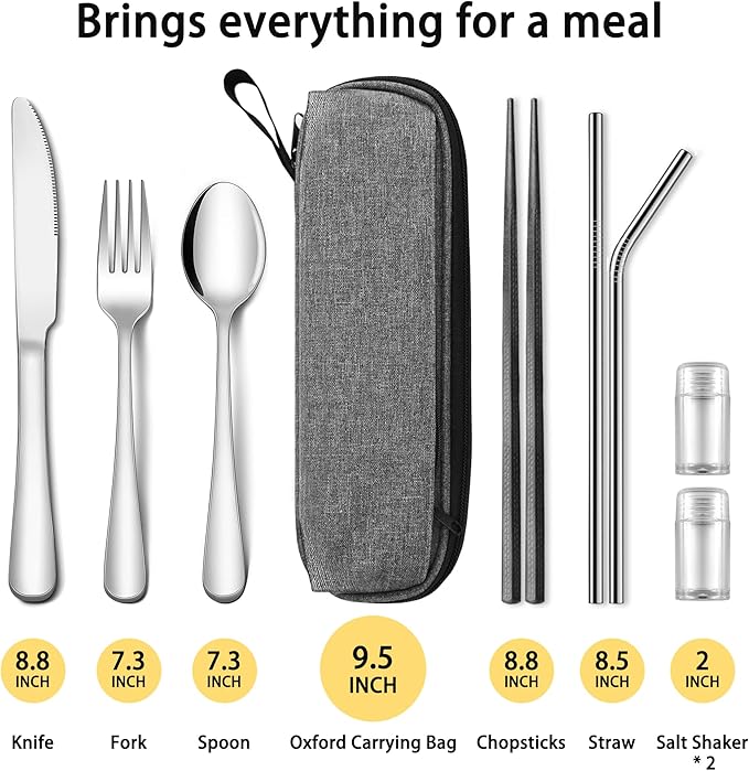 Travel Utensils Set with Splash-poof Bag, Portable Cutlery for Work, Reusable Camping Silverware Utensil, 18/0 Stainless Steel Flatware for Adult Lunch Picnic Hiking EDC Gadgets Lunch Box
