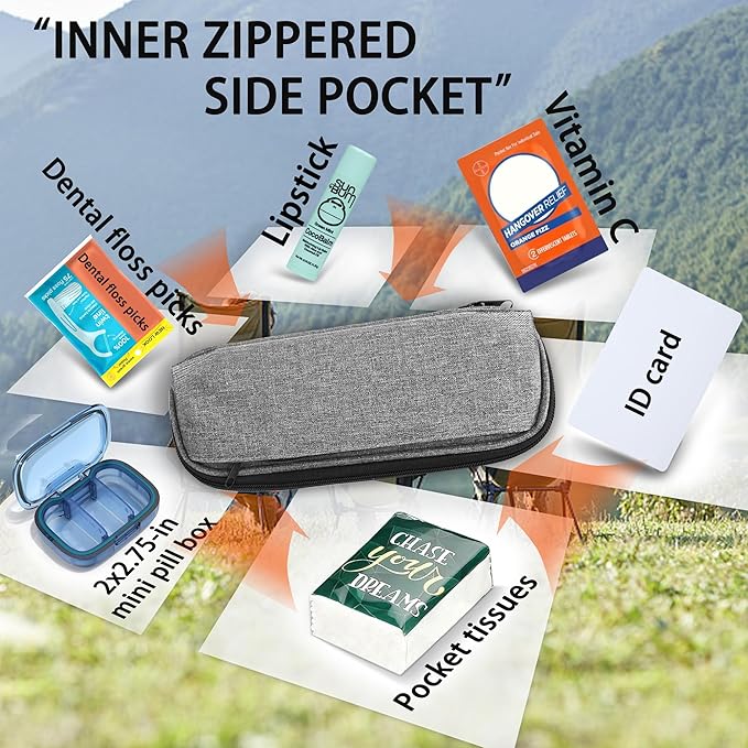 - Small-size but high-capacity portable utensil bag - This splash-proof Oxford cloth bag is similar in size to the other portable bags, but the side pocket has been improved to make it easy to put in more small items such as lipsticks, handkerchiefs, dental floss, mini pillboxes, etc.