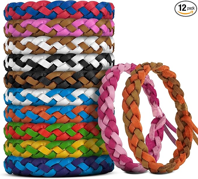 12 Pack Mosquito Repellent Bracelets, DEET-Free, Individually Wrapped PU Leather Insect & Bug Repellent Wrist Bands for Kids & Adults