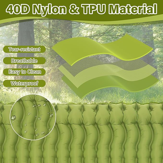 - Ultra Lightweight Sleeping Pad: Weighing just 3.3 pounds, this extra-large double self-inflating camping sleeping pad is designed for campers seeking maximum comfort without added bulk. Crafted from a cutting-edge nylon composite PTU fabric, it boasts ultra-light characteristics while ensuring high toughness for unmatched sturdiness and durability.
