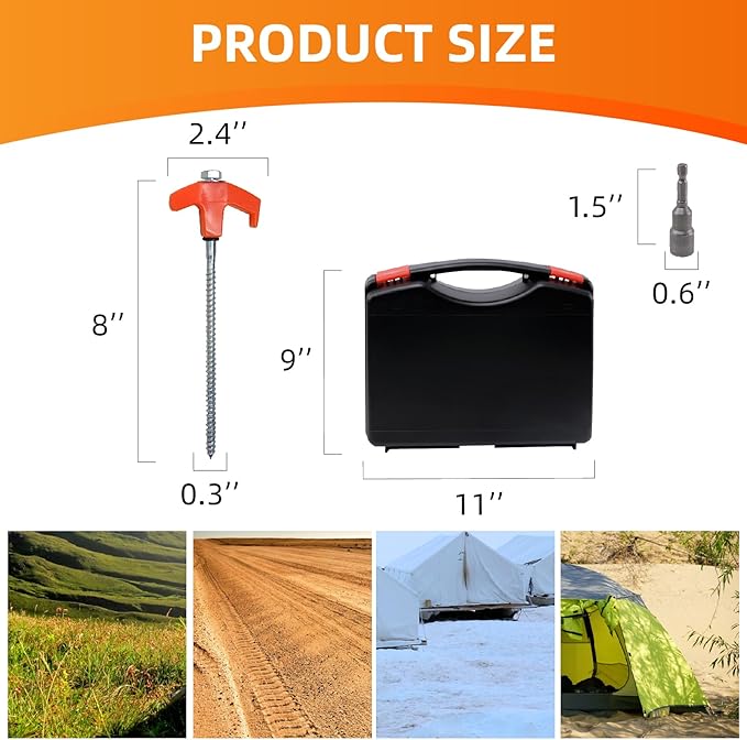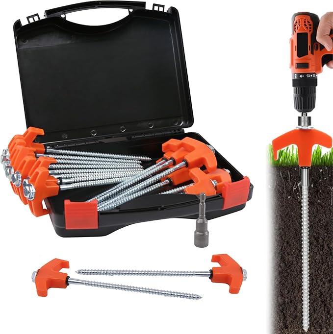 - ✅【Package includes】16 x Tent Stakes,13mm Hex Drill Bit, Storage Box.