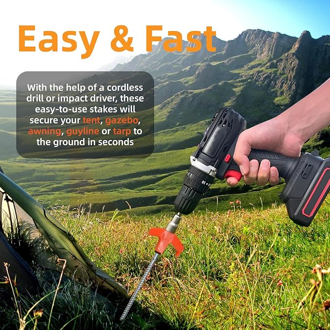 - ✅【8 Inch Screw Tent Stakes】Our tent stakes are quick and easy to install. With the help of a cordless drill or impact driver, these easy-to-use stakes can attach your tent, canopy, gazebo, awning, guyline or tarp in seconds Fixed to the ground.