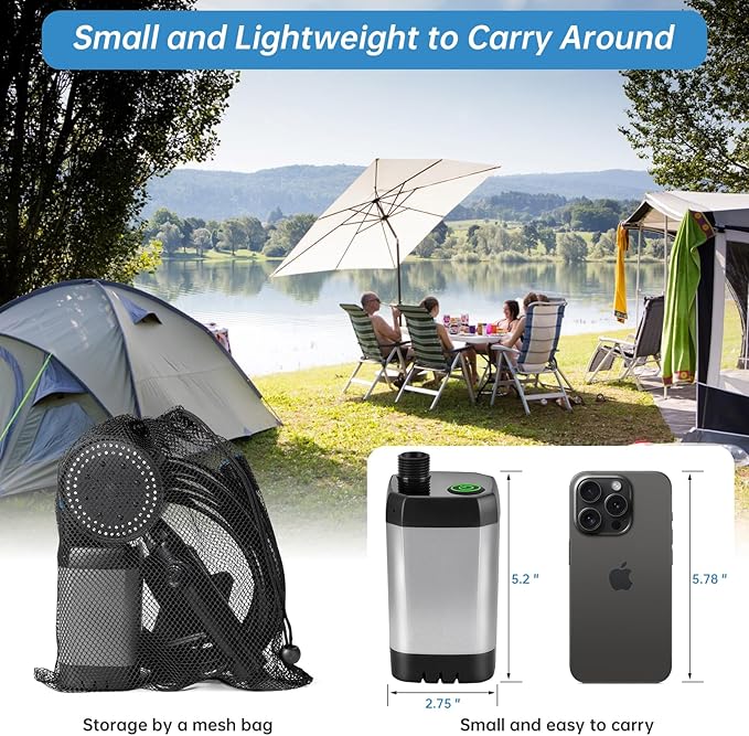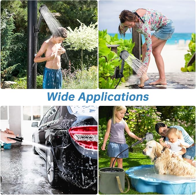 - 𝗖𝗼𝗺𝗽𝗮𝗰𝘁 𝗮𝗻𝗱 𝗣𝗼𝗿𝘁𝗮𝗯𝗹𝗲 - Weighs only 2.3lbs, lightweight & compact camping shower kit, easy to carry for outdoor activities, like camping, hiking, pet cleaning, car washing, plant watering, or washing off sand on the beach.