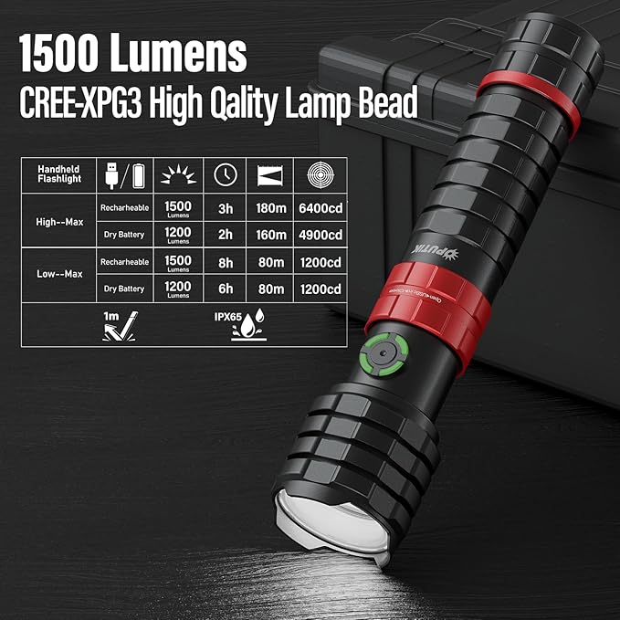- Handheld Flashlight High Lumens ➤ Includes 2 Pack Flashlights.OPUTIK Handheld Flashlights built-in advanced brightness of 1500 lumens CREE-XPG3 Lamp Bead.This rechargeable flashlight is about 10 times brighter than ordinary flashlights.Small size,light weight,easy to carry,and does not take up space.