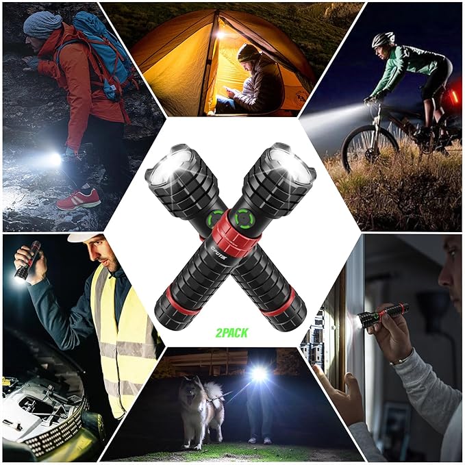 2PACK Portable Rechargeable Handheld Flashlight,Led Flashlights 1500 High Lumens,Military Grade Emergency Tactical Flashlights Suitable for Home,Outdoor,Camping,Biking,Hiking,Hurricane