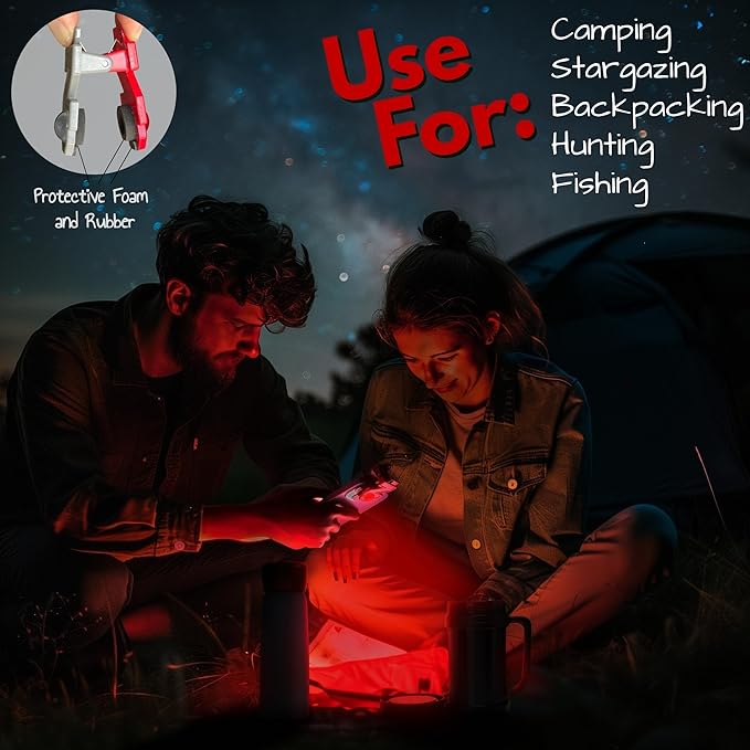 2-in-1 Red Flashlight Adapter for Smartphones, Red and White Light Booster for Camping, Hunting, Astronomy, and Travel, No Batteries or Charging Cords Required