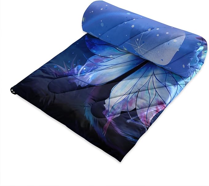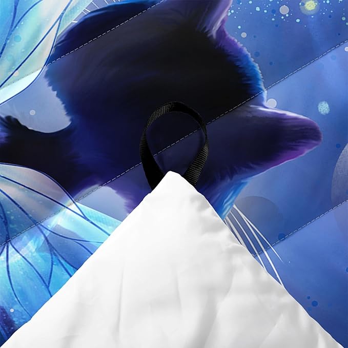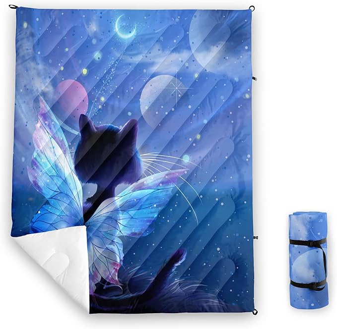 Axolotl Butterfly Cat Camping Blanket,Moon Stars Packable Outdoor Blanket,Glitter Planet Lightweight Waterproof Printed Blanket,Cat Lover Travel Blanket for Camping,Travel,Stadium,Hiking,Navy Blue