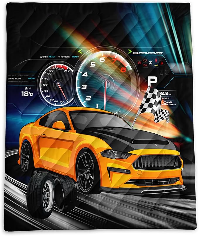 Axolotl Racing Car Lightweight Travel Blanket,Cooling Car Camping Blanket,Boys Extremly Gaming Packable Portable Outdoor Blanket,Dashboard Wheel Flag Travel Blanket for Hiking,Traveling,Camping,Yellow